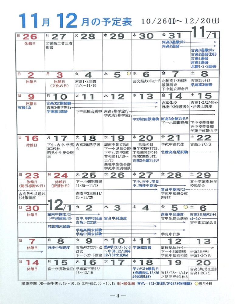 月~金 3:45~夜10:15