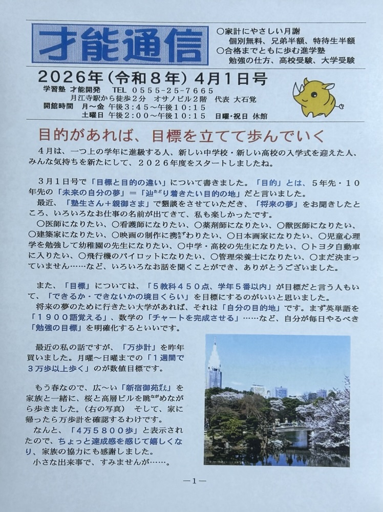 才能通信4月1日号です。