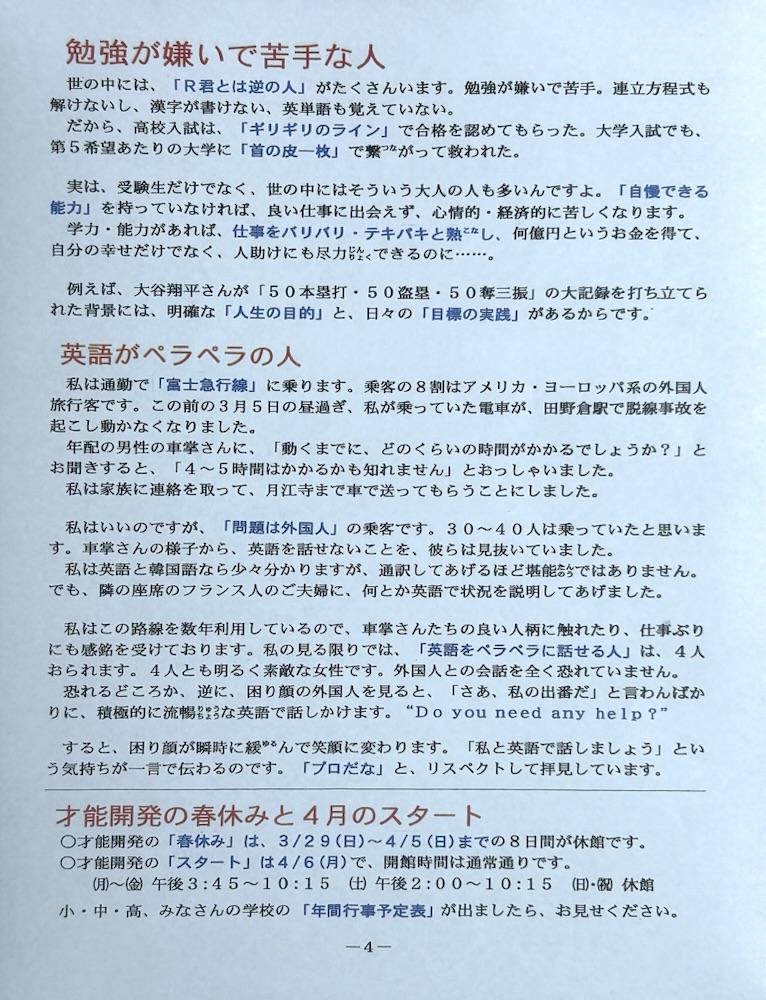 ー才能開発からのお知らせを更新ー